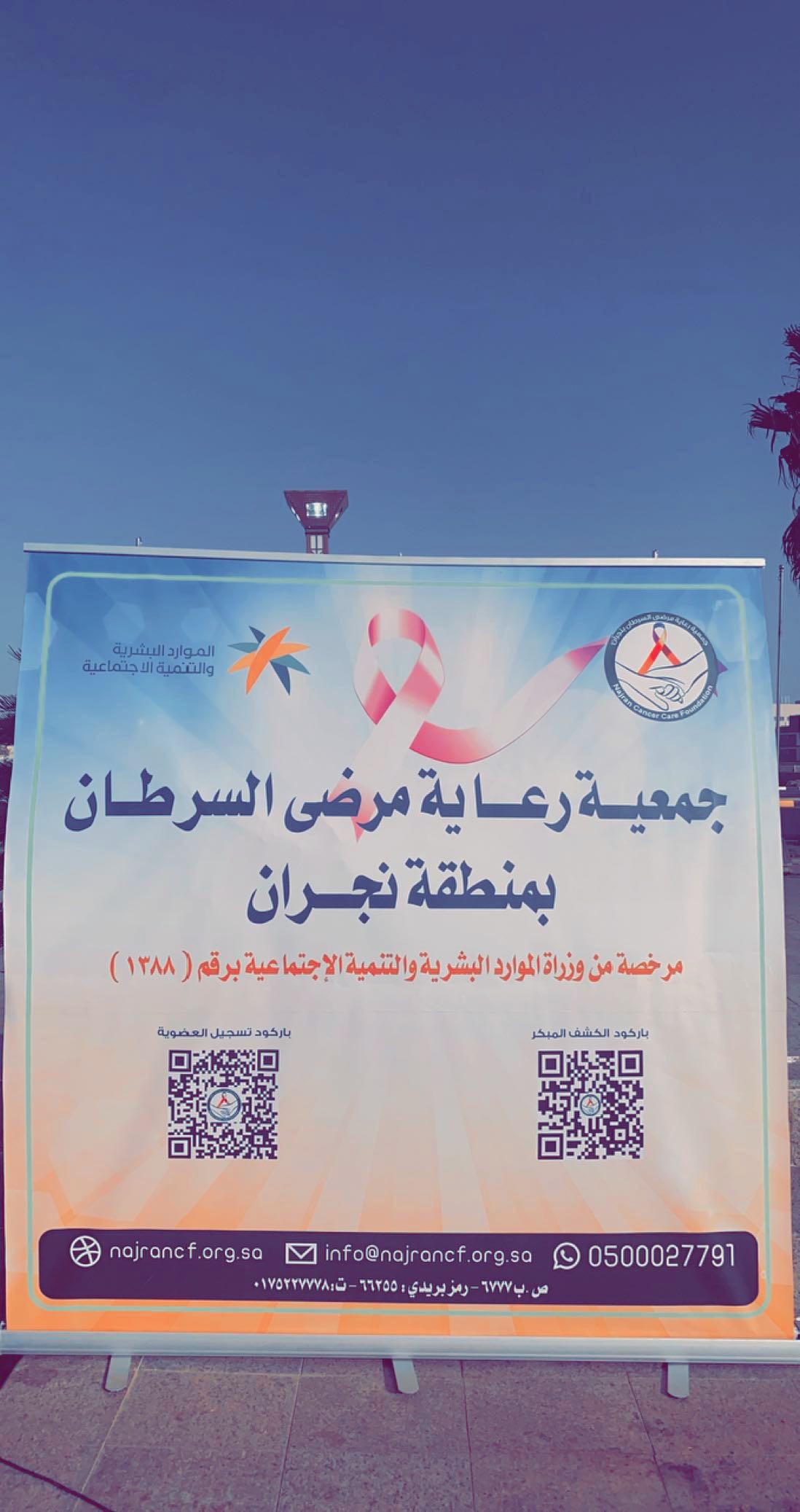 وانطلقت بالمشي على الأقدام من أمام أمانة منطقة نجران وصولًا إلى ساحة نافورة نجران التفاعلية بمشاركة الفرق التطوعية يتقدمهم الدكتور "العتيبي"، ليُستهل بعد ذلك فقرات البرنامج المُعد بكلمة لرئيس مجلس إدارة جمعية رعاية مرضى السرطان اللواء متقاعد قناص آل سوار مرحبًا من خلالها بالضيوف منوه بالدعم الكبير الذي تتلقاه الجمعية من قبل أمير منطقة نجران، متحدثًا عن الدور التوعوي الذي قدمته رعاية خلال شهر دُشن بأطلاق 1828 بالونه باللون الوردي في سماء نجران بعدد المصابين في المنطقة دعمًا لهم وتأكيد على دور الجميع في الدعم والتوعية، كذلك تطرق لاستهداف رعاية خلال التوعية لجميع أطياف المجتمع ، حيث تنوعت الفعاليات بين ندوات ومحاضرات وملتقيات وزيارات لبعض مدارس وإدارات المنطقة وكذلك التوعية من خلال وسائل التواصل المختلفه لنشر الوعي بأهمية الكشف، وتسليط الضوء على مواقع الكشف ، وتسهيل الوصول من خلال باركود معد من الجمعية لمساعدة أفراد المجتمع، شاكرًا في ختام كلمته أمارة المنطقة وجميع الجهات والفرق المشاركة، تلى ذلك فقرات إنشادية من تقديم المنشد عبدالله الخاطر وفرقة بسمات وطن.