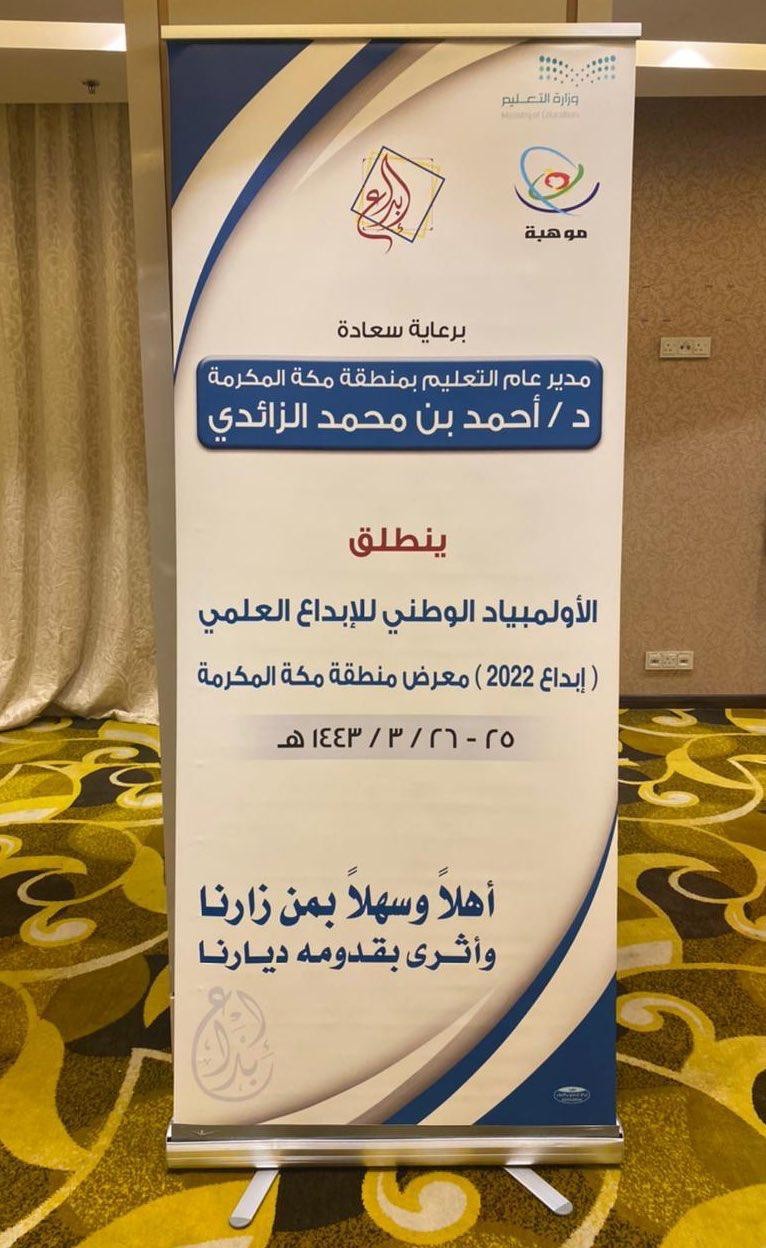 برعاية المدير العام للتعليم بمنطقة مكة المكرمة الدكتور محمد بن أحمد الزائدي استضافت الإدارة العامة للتعليم بمنطقة مكة المكرمة ممثلةً بإدارة الموهوبين   (بنين بنات )ليومي الأحد والإثنين الموافق ٢٤_٢٦ /٣ /١٤٤٣ه ، معرض الأولمبياد الوطني للإبداع العلمي ( إبداع) والذي