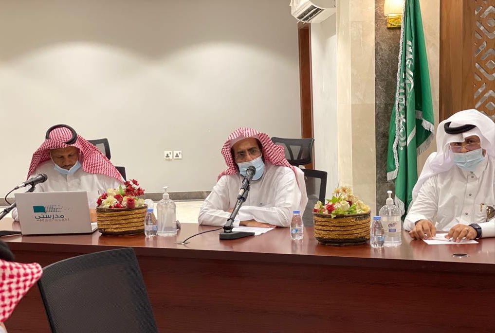 جاء ذلك بحضور المساعد للشؤون المدرسية الدكتور علي بن محمد السوادي ، والمساعدة للشؤون التعليمية " بنات " الأستاذة هدية محمد البركاتي ، وعدد من رؤساء ورئيسات الأقسام والمشرفين والمشرفات .