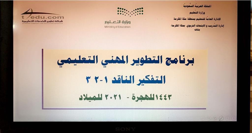 ‏نفذت الادارة العامة للتعليم بمنطقة مكة المكرمة ممثلة في مكتب تعليم شرق مكة برنامجًا بعنوان (التفكير الناقد ١-٢-٣ ) عن بعد ابتداءً منيوم الأحد الموافق ١٤٤٣/٣/١١ هـ وحتى يوم الخميس الموافق ١٤٤٣/٣/٢٩هـ وعلى مدار  ٣ أسابيع ، نفذته المشرفة ريم القرشي بمركزالتدريب الخامس عبر تطبيق zoom تحت إشراف مديرة مكتب تعليم شرق مكة أمل باجابر.