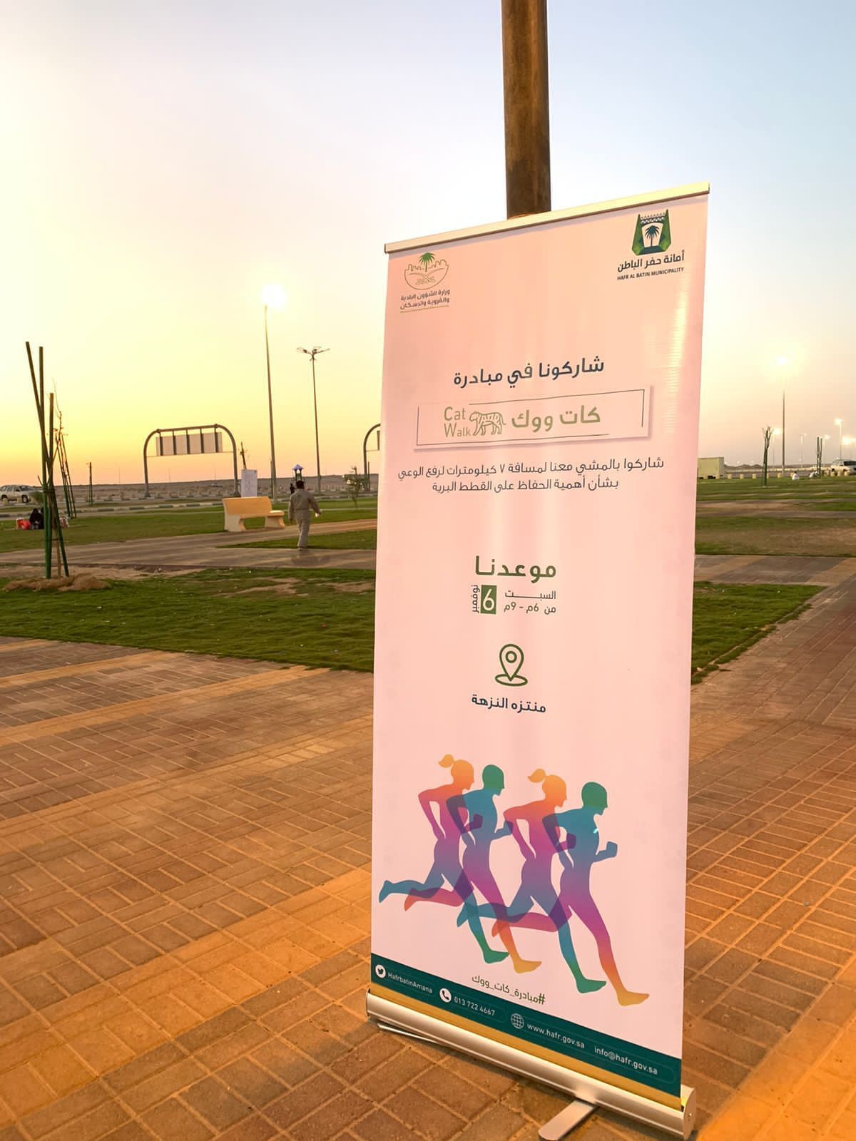 شاركت أمانة محافظة حفر الباطن في فعالية رياضة المشي Catwalk لمسافة 7 كيلو متر بالتزامن مع المبادرة العالمية للحفاظ على القطط البرية المعرضة للانقراض في بيئتها الطبيعة، والتي من ضمنها النمر العربي الذي يقطن جبال جنوب المملكة العربية السعودية، بالإضافة لعرض لوحات تثقيفية عن المبادرة واهميتها ولوحات تعريفية بفصيلة النمر العربي.