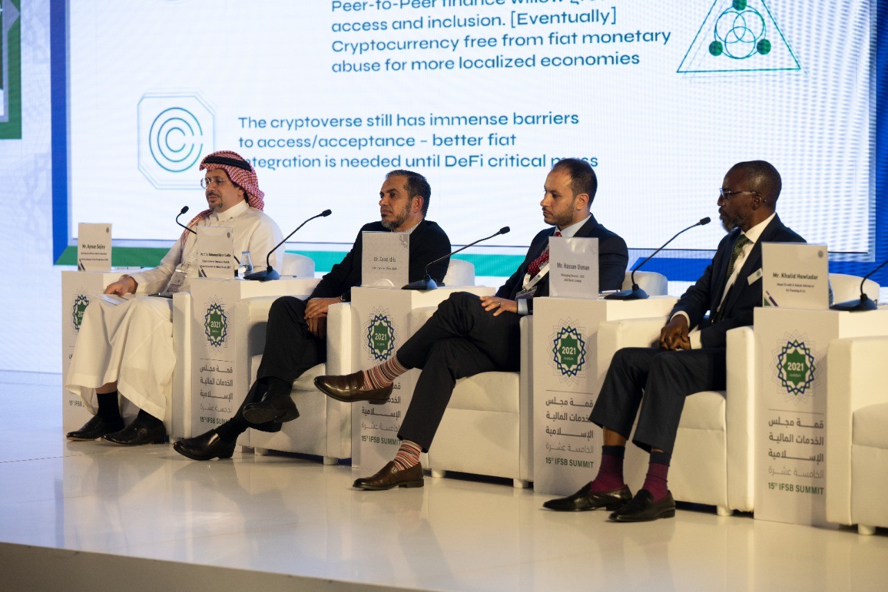 جاء ذلك خلال جلسة الأصول المشفرة وانعكاساتها على المالية الإسلامية التي شارك فيها الرئيس التنفيذي للمؤسسة الإسلامية لتنمية القطاع أيمن سجيني، والمدير التنفيذي للأكاديمية الدولية للبحوث الشرعية للتمويل الإسلامي الدكتور محمد أكرم لالدين، والرئيس التنفيذي للغرباء زياد إدريس، ورئيس استشارات الائتمان والصكوك خالد هولدار.