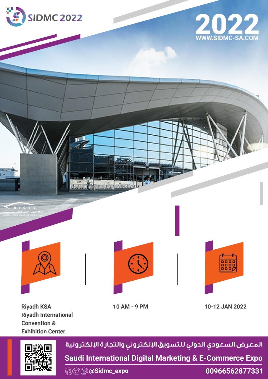 ستشهد العاصمة السعودية الرياض، بدء انطلاقة فعاليات المعرض السعودي الدولي للتسويق الإلكتروني والتجارة الإلكترونية SIDMC 2022 ، تحت شعار لقاء مستقبل التجارة، وذلك في تاريخ 10 يناير المقبل ولمدة ٣ أيام، في مركز الرياض للدولي للمؤتمرات والمعارض.