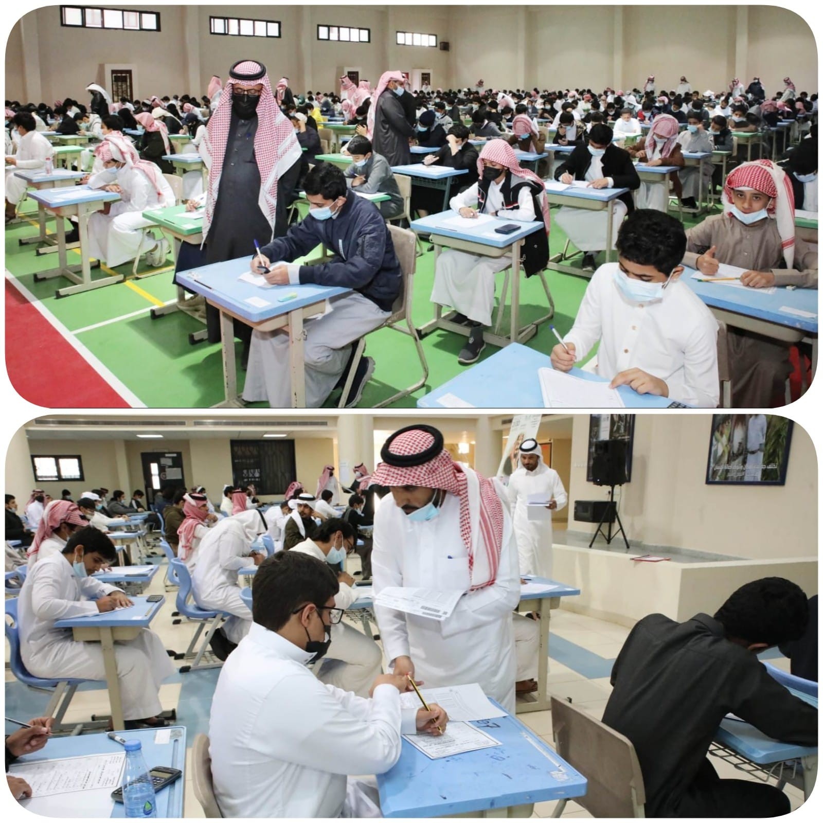 وكانت اختبارات الفصل الدراسي الأول قد انطلقت صباح أمس وسط منظومة متكاملة من الاستعدادات إذ أدى قرابة 280 ألف طالب وطالبة ما بين حضوري وعن بعد اختباراتهم، فيما جرى تنفيذ خطة لدعم ومساندة المدارس من قِبل إدارتي الإشراف التربوي "بنين وبنات" ومكاتب التعليم، وقيادات الإدارة، والتأكد من جاهزيتها بالإضافة إلى توفير المستلزمات الصحية والوقائية وبث رسائل توعوية وصحية للطلاب والطالبات قبل بدء الاختبارات وتشكيل فريق عمل للدعم التقني فيما يتعلق بالاختبارات عن بعد وفريق الرصد، وتعزيز الشراكة مع الأسرة وأولياء الأمور لتهيئة الطلبة نفسياً لأداء الاختبارات التحريرية حضوريا، إضافة إلى تشكيل فريق عمل من إدارتي الاختبارات والقبول "بنين وبنات" لدعم وتنظيم أعمال الرصد ولجان الكنترول.