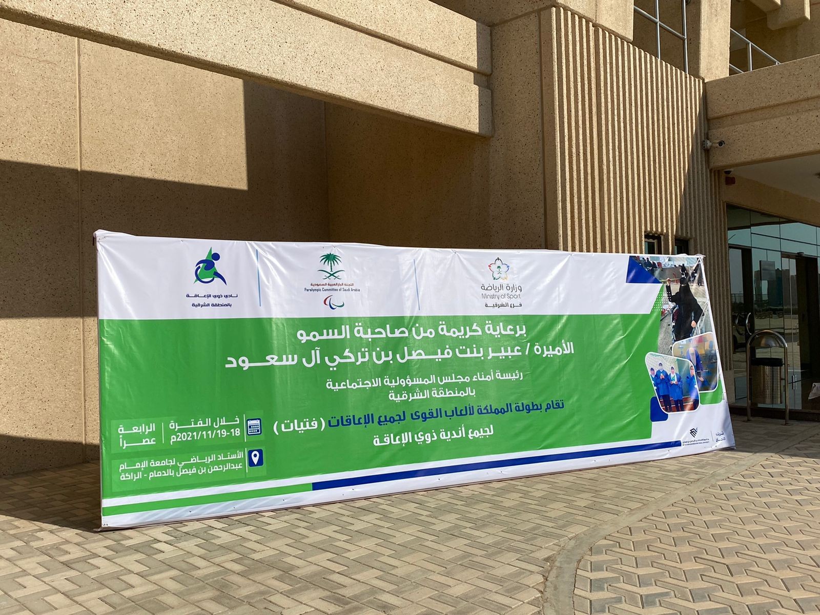حيث تُقام البطولة لمدة يومين على ملاعب جامعة الامام عبدالرحمن بن فيصل، ويُشارك في البطولة من مختلف الإعاقات البصرية والحركية والشلل الدماغي والذهني.