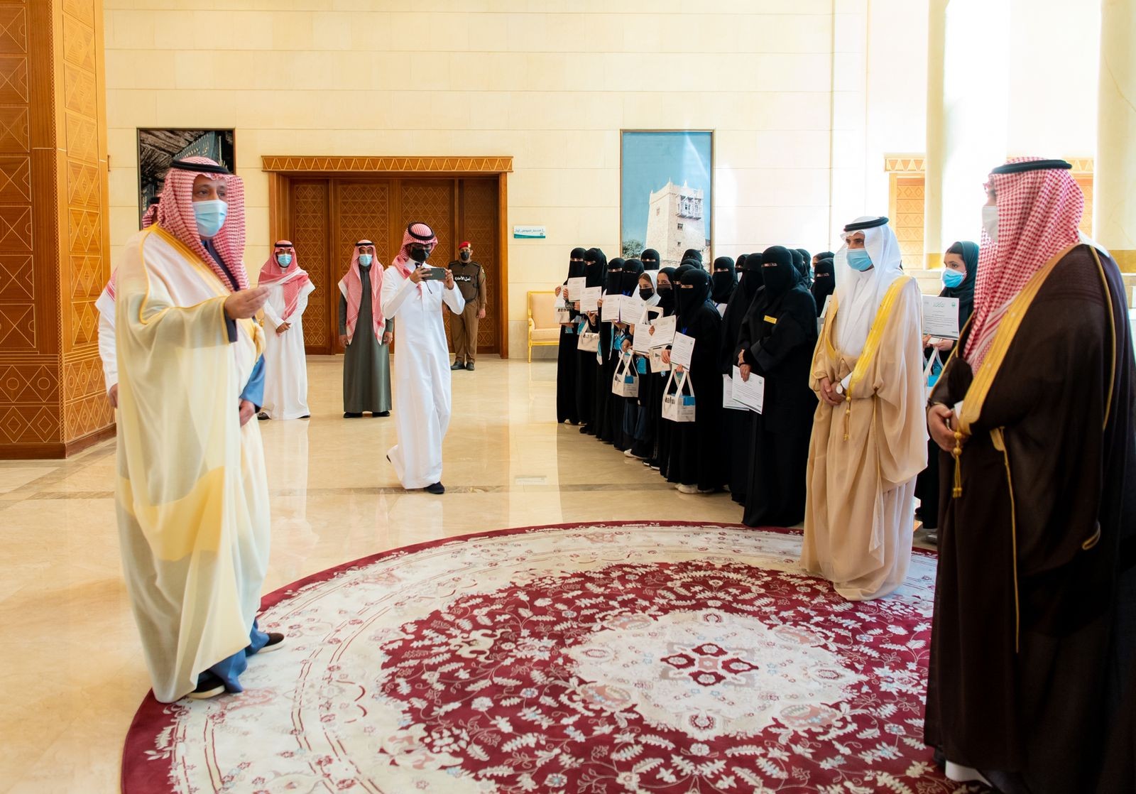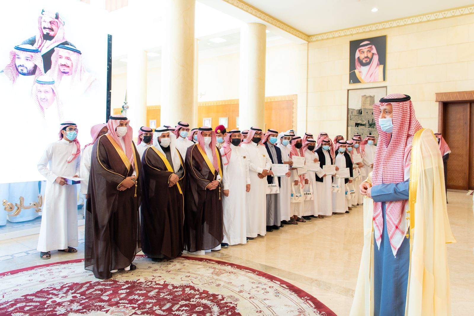 امير منطقة الباحة يستقبل الطلاب والطالبات المشاركين في معرض الابداع ويقدم مكافئة 5000 ريال لكل طالب وطالبة