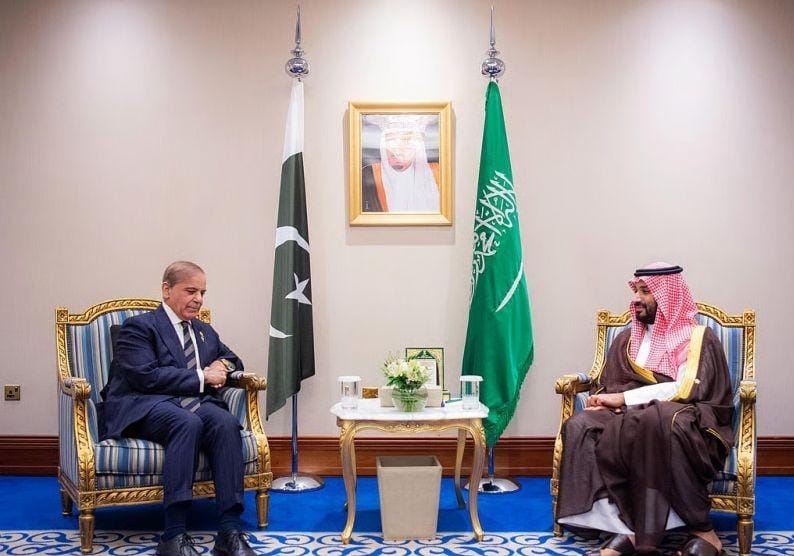 التقى صاحب السمو الملكي الأمير محمد بن سلمان بن عبدالعزيز آل سعود، ولي العهد رئيس مجلس الوزراء، دولة السيد محمد شهباز شريف رئيس الوزراء في جمهورية باكستان الإسلامية.
