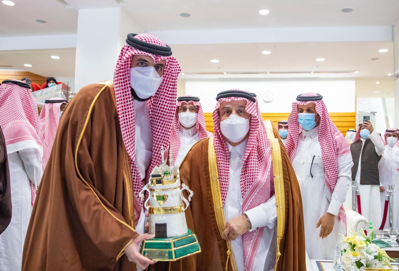 حيث سلم امير منطقة الرياض الكأس للأمير سعود بن سلمان مقدماً له التهنئة بهذا الإنجاز.