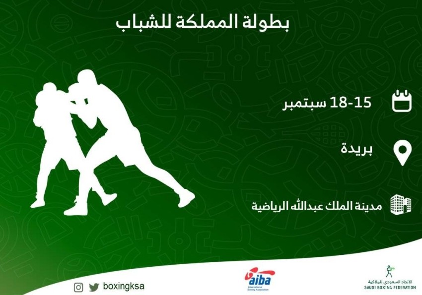 تنطلق مساء الغد نزالات بطولة المملكة للملاكمة للشباب على صالة مدينة الملك عبدالله الرياضية بمدينة بريدة وتستمر لمدة 4 أيام .