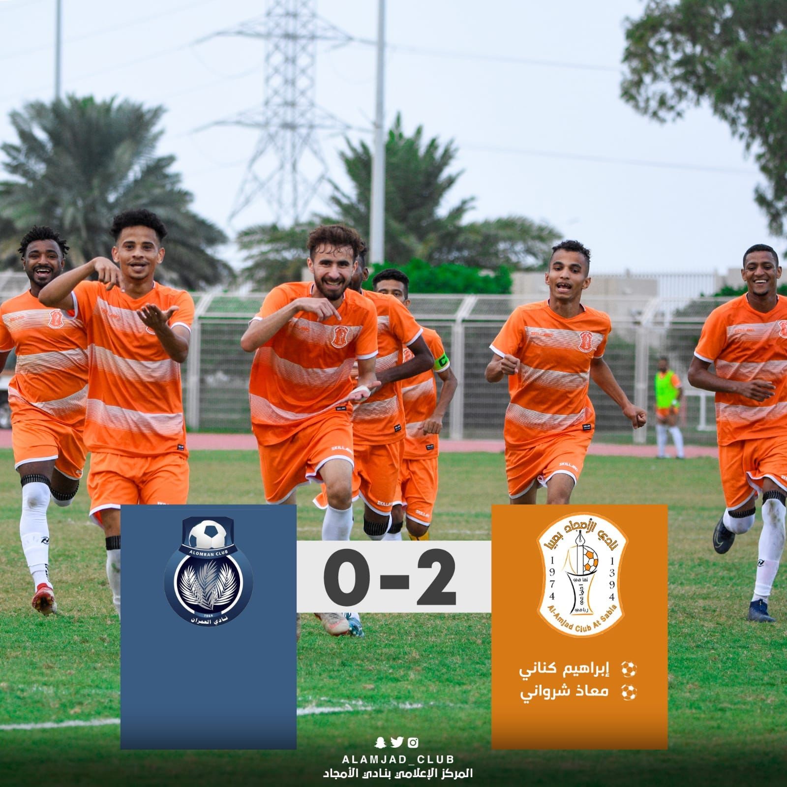 دخل لاعبو الأمجاد هذا الشوط بإصرار كبير وواضح وهجمات متواصلة لتعزيز النتيجة في ظل الضعف اللياقي الذي ظهر عليه لاعبو العمران خلال مجريات الشوط الثاني وتنوعت هجمات الأمجاد وضاعت أكثر من فرصة وفي المقابل كانت هناك محاولات خجولة للضيوف من أجل إداك التعادل وفي ظل الترقب والخوف الذي سيطر على المنصة ومدرج الأمجاد من هدف التعادل كان للمبدع "معاذ شرواني" كلمة وحضور مميز عندما أخذ كرة من وسط الملعب وراوغ فيها مدافعين ومن قوس منطقة الجزاء يفاجىء حارس العمران بتسديدة قوية ساقطة سكنت المرمى معلنةً هدفًا ثانيًا للأمجاد قبل نهاية المباراة بدقائق معدودة لينشر الفرح بين أنصار أمجاد صبيا بتأكيد النتيجة والعودة لسكة الانتصارات … بعد هذا الهدف سيطر الأمجاد على المباراة واستمرت المحاولات لإضافة هدف ثالث إذ أضاف الحكم خمس دقائق كوقت بدل ضائع لكن النتيجة بقيت على حالها لتنتهي المباراة بفوز الأمجاد بهدفين نظيفين دون مقابل للعمران.