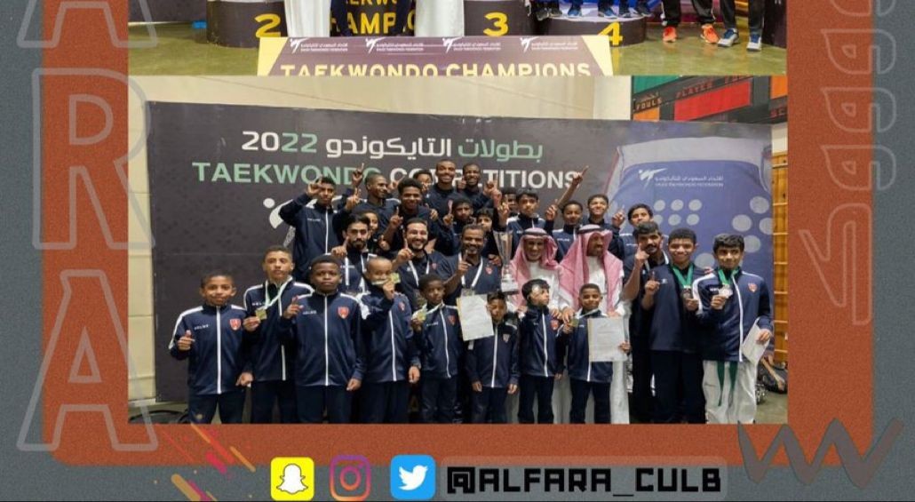 الاستاذ محمد زيد الوبران وبحضور الاستاذ تركي محمد الهزاني فريق الفرع بطلاً لبطولة المملكة للأندية الأبطال للبراعم 2022 م وحل نادي الفيصلي وصيفاً والشباب ثالثاً والعدالة رابعاً ، وذلك بالبطولة التى احتضنتها صالة الأمير فيصل بن فهد بالملز ،  حيث واصل فريق التايكوندو بنادي الفرع انتصاراته وتحقيقه لقب البطولة عبر ثلاثة لاعبين حققو الميداليات الذهبيه هم  فهد بامسعود وعبدالاله الدوسري ومشاري قيسي فيما حقق ميداليات البرونز نايف الزهراني وعبدالملك القرون فيما حقق  فريق التايكوندو بنادي الهلال لقب بطولة المملكة للأندية الأبطال للناشئين بمشاركة (211) لاعبًا يمثلون (22) نادياً بعد تحقيقه (304) نقطة وذهبيتي زيد يسر ونواف حسين ، وحل فريق أبها ثانياً  برصيد (274) .