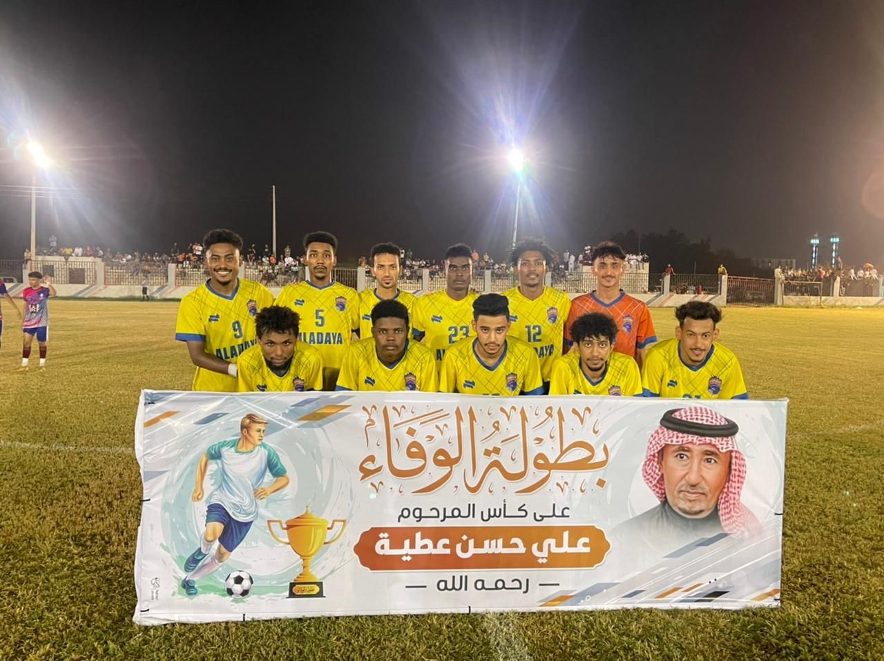 مساء الجمعة  ٦ صفر ١٤٤٤هـ الموافق ٢ سبتمبر ٢٠٢٢م أقيمت المباراة النهائية لبطولة الوفاء على كأس علي عطية- رحمه الله- وجمعت فريقي العدايا والوحدة بحضور شيخ بلدة العدايا الشيخ عبدالقادر عداوي ومدير مكتب رابطة فرق الهواة بصبيا الأستاذ عيسى غزاوي ونائبه الأستاذ مصطفى الحازمي ورئيس فريق العدايا الأستاذ أحمد عسيري طيري وابن علي حسن عطية رحمه الله "أحمد" الذي حمل كأس الوفاء باسم والده لوسط ملعب المباراة قبيل انطلاقتها.