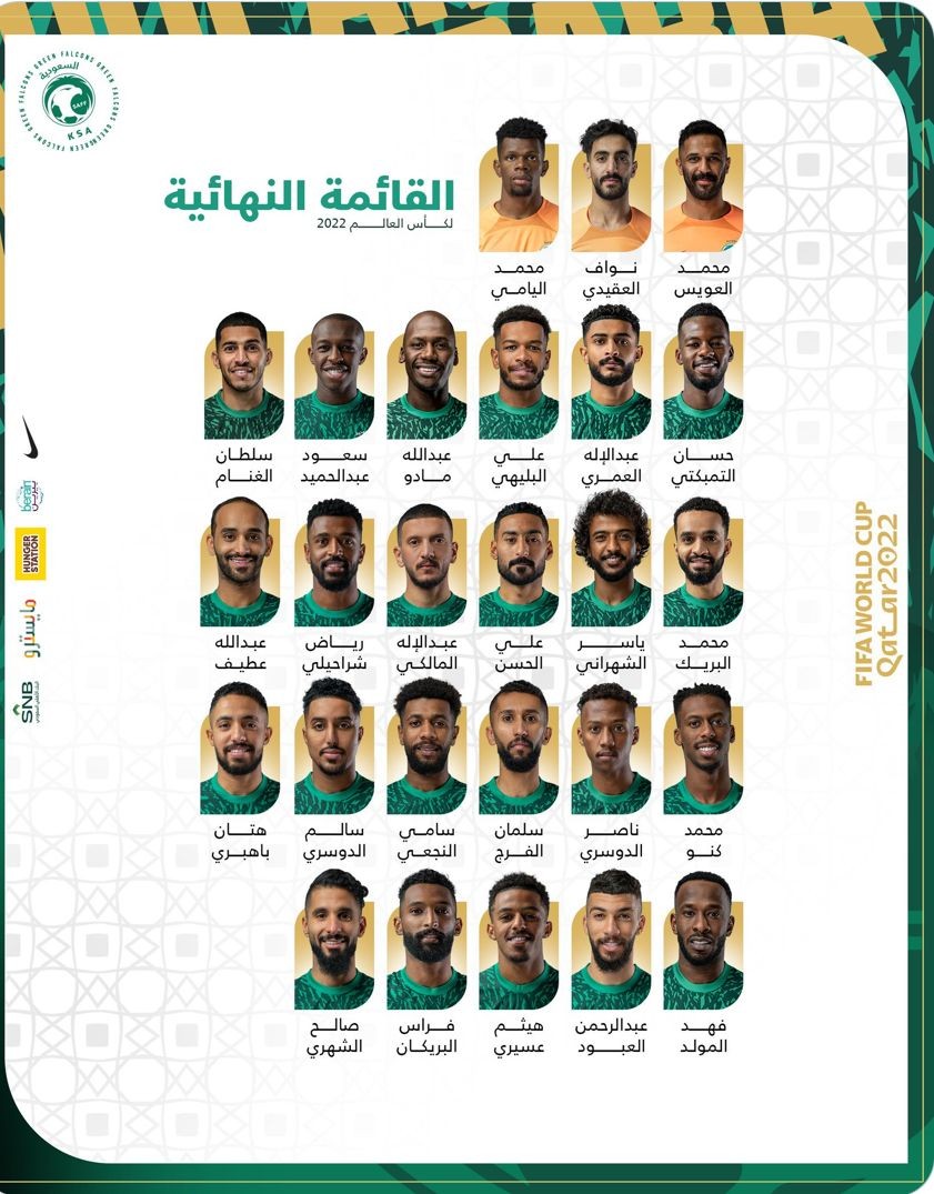 أختار مدرب المنتخب السعودي رينارد قائمة الأخضر النهائية، التي ستشارك في نسخة كأس العالم 2022، المقرر إنطلاقها في 20 من نوفمبر الجاري، بدولة قطر الشقيق .