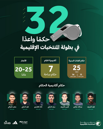 32 حكمًا واعدًا في بطولة المنتخبات الإقليمية