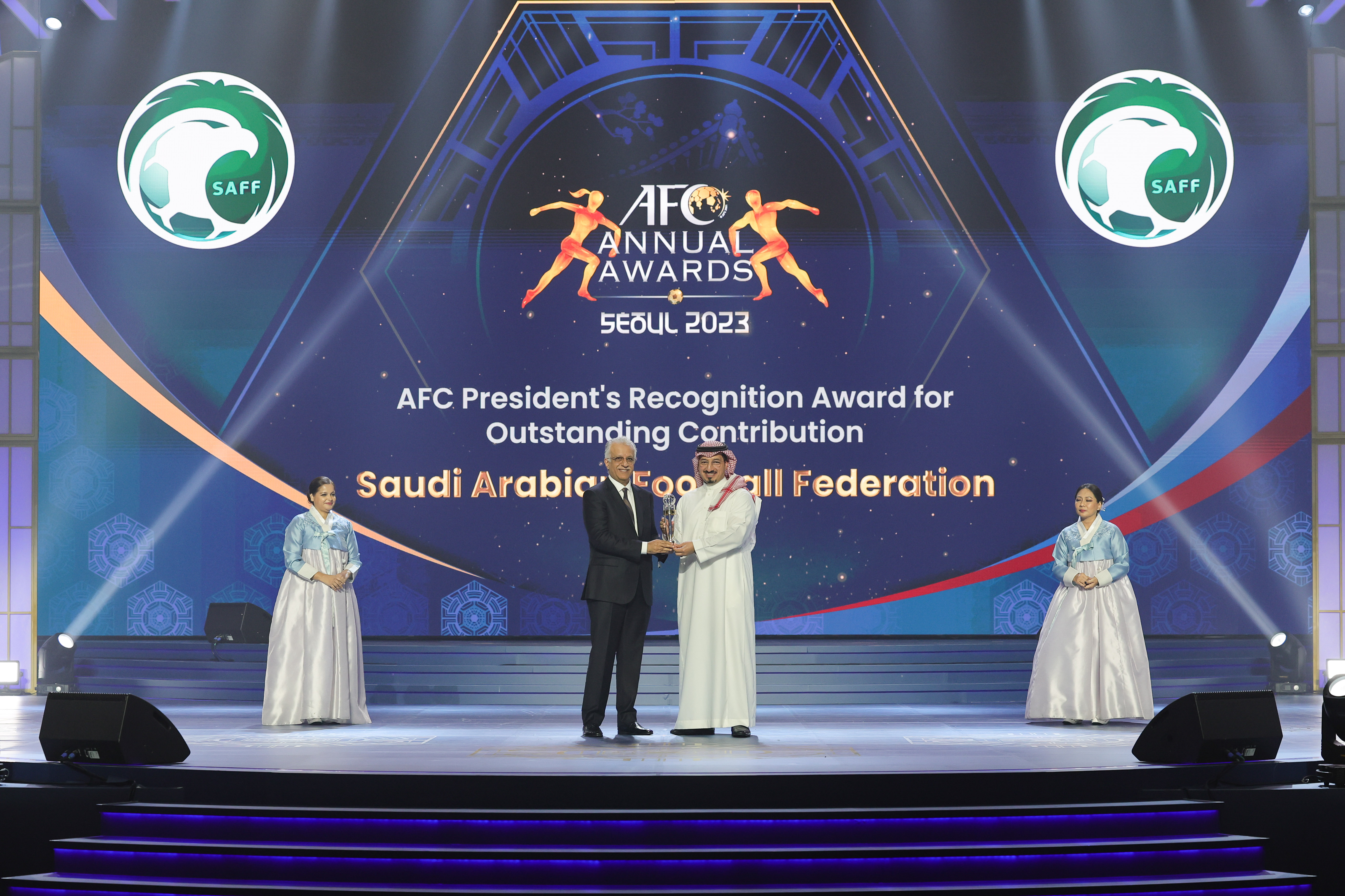 واعتبر رئيس الاتحاد السعودي أن حصول الاتحاد السعودي على جائزة الاتحاد الآسيوي للمساهمة المتميزة في نسختها الأولى، خلال حفل توزيع الجوائز السنوي للاتحاد الآسيوي لكرة القدم الـ28 الذي أقيم اليوم الثلاثاء في سيؤول عاصمة جمهورية كوريا الجنوبية، وسام فخر واعتزاز بثقة الاتحاد الآسيوي لكرة القدم والاتحادات الأهلية، مؤكدًا أن ذلك يدفعهم لمزيدٍ من العمل لمواصلة النتائج المميزة.