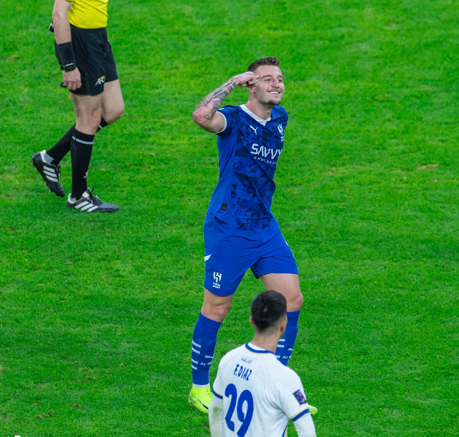 ليعلن بعد ذلك حكم اللقاء عن نهاية المبارة بفوز الهلال بثلاثية وصدارة دوري أبطال أسيا للنخبة وأختيار كابتن الفريق سالم الدوسري رجل المباراة.
