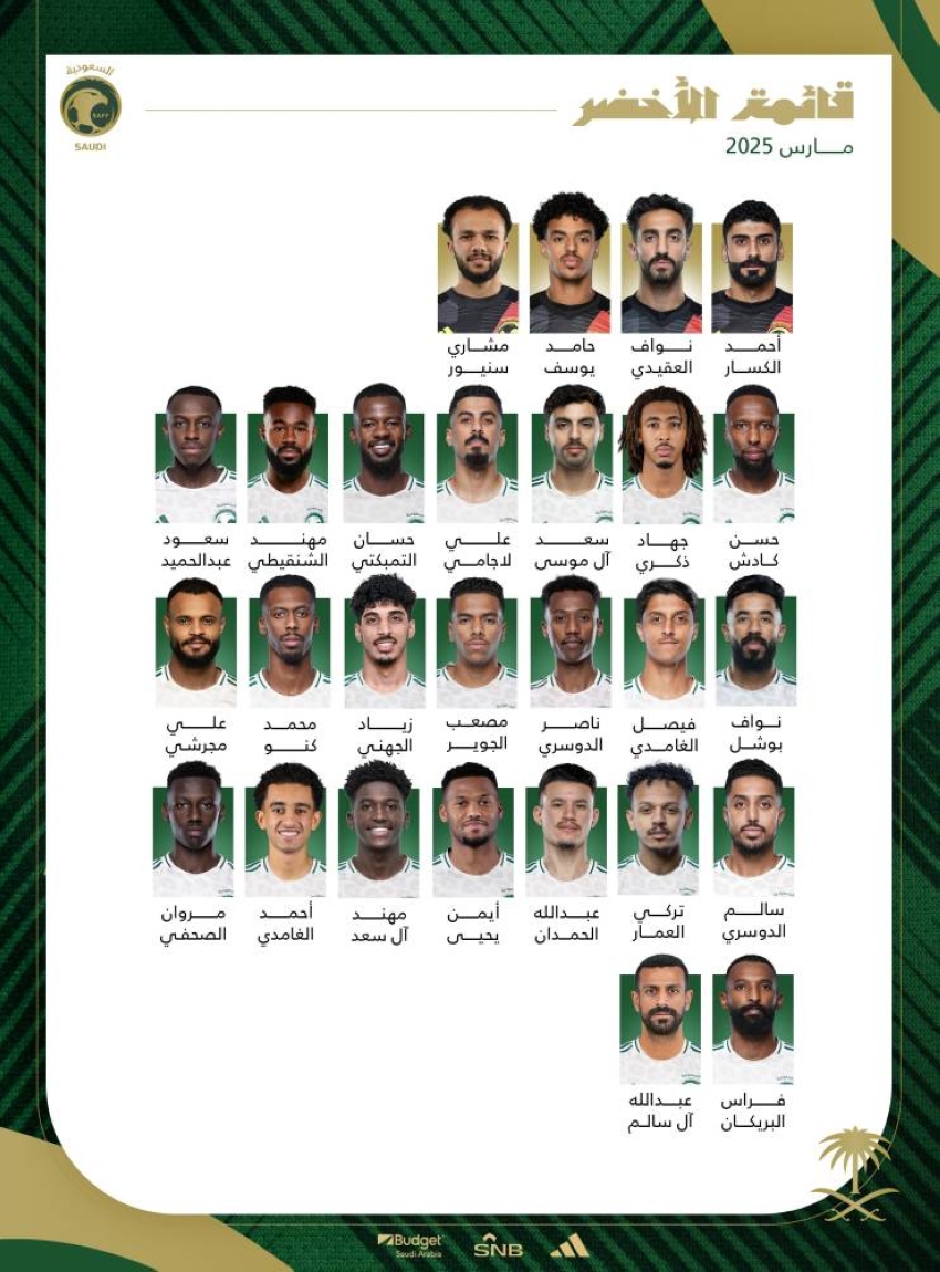 27 لاعبًا في قائمة المنتخب السعودي لمواجهتي الصين واليابان ضمن تصفيات كأس العالم 2026