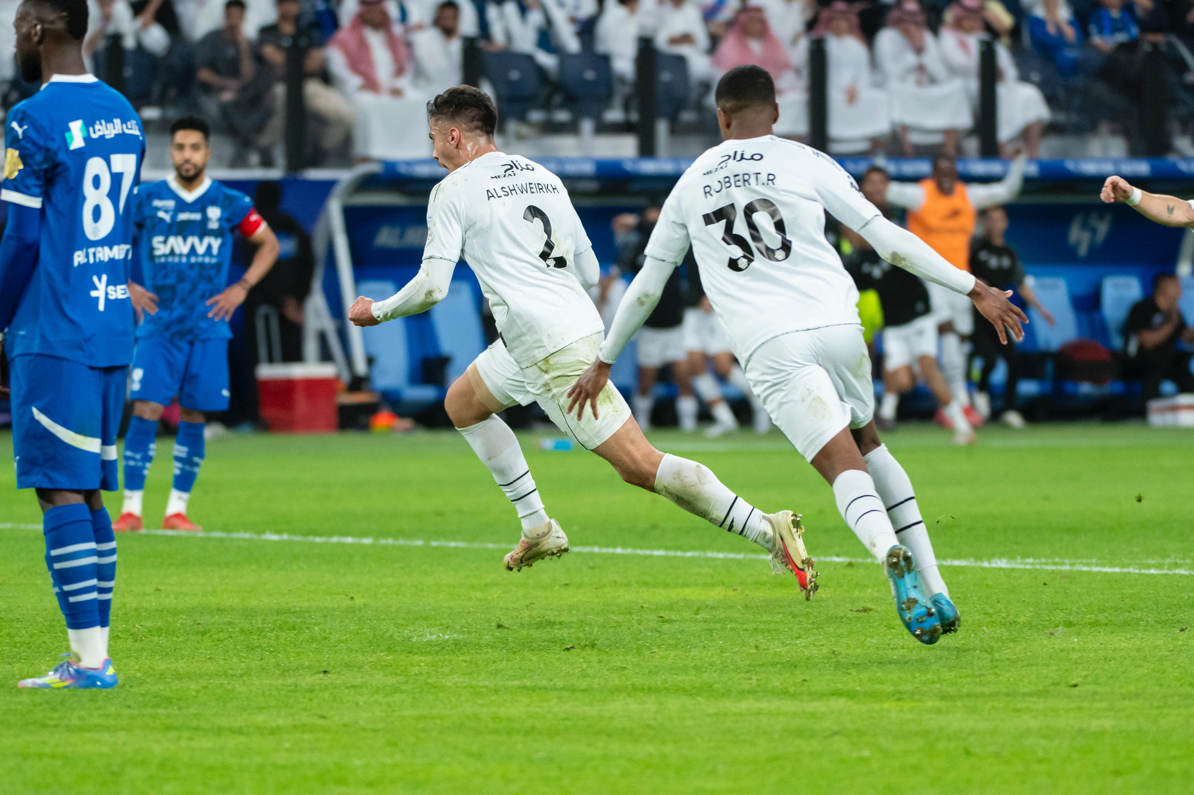 وفي الشوط الثاني وأصل الفريقين مجدداً الهجمات والضغط على مرمى الفريقين، ليتمكن كابتن الهلال سالم الدوسري من تسجيل هدف التقدم لفريقة عند د46 من عمر اللقاء، واصل بعد ذلك الفريقين تنظيم الهجمات التي لم تنجح لسؤ التنفيذ والأستعجال وعدم التركيز، وعند د 68 ومن ركنية يضيف محمد الشويرخ الهدف الثاني والتعادل لفريقة وسط دفاع سيئ من الجانب الهلالي.