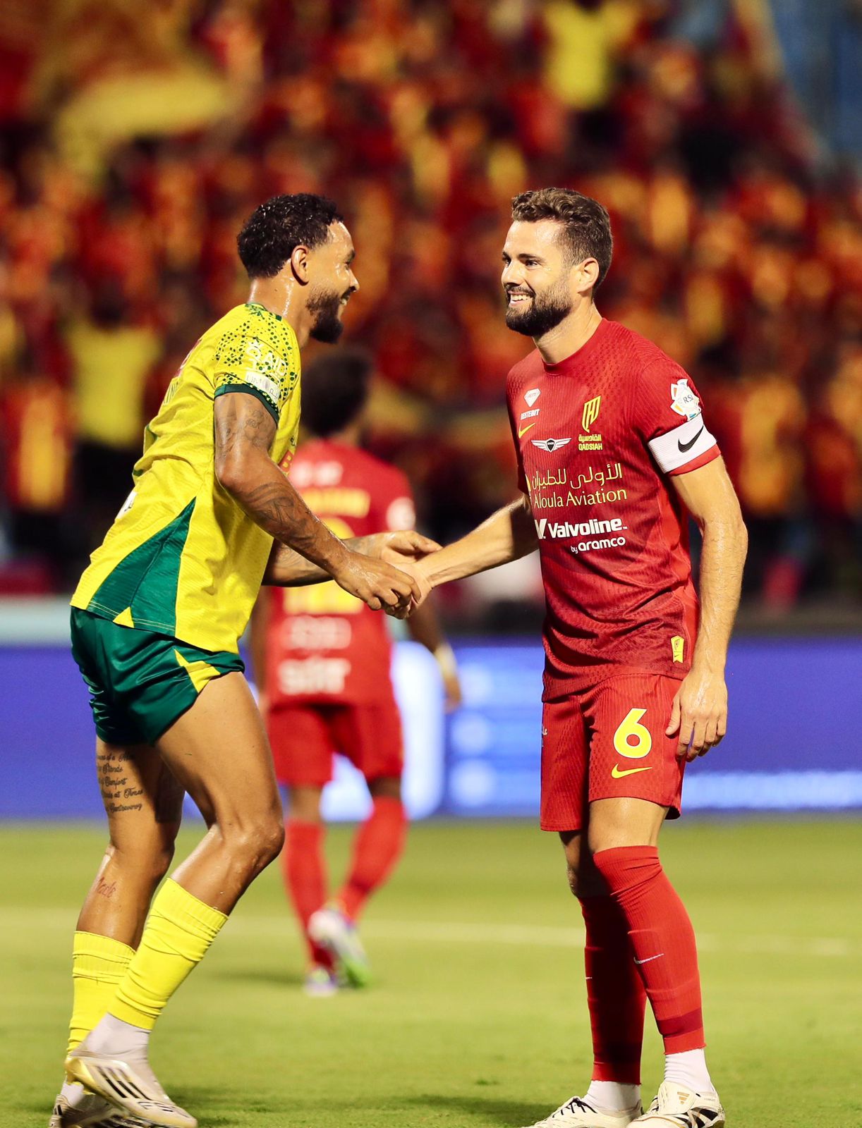 وشهد اللقاء إقصاء مدرب الخليج اليوناني دونيس بعد احتجاجه على قرار تحكيمي ألغى هدفاً لفريقه.
