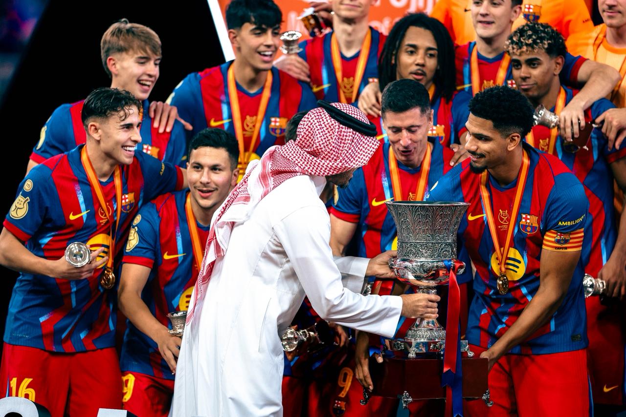 توَّج سمو وزير الرياضة، رئيس اللجنة الأولمبية والبارالمبية السعودية الأمير عبدالعزيز بن تركي الفيصل، فريق برشلونة بكأس السوبر الإسباني لعام 2026، عقب فوزه على ريال مدريد بثلاثية مقابل هدفين، في المباراة النهائية التي أُقيمت على ملعب الإنماء بمدينة الملك عبدالله الرياضية بجدة، وذلك بحضور رافائيل لوزان أبال رئيس الاتحاد الإسباني لكرة القدم، وعدد من قيادات الوزارة والاتحاد الإسباني، ومسؤولين رياضيين في القطاع الرياضي، وسط حضور جماهيري كبير جداً بلغ 60326 متفرجًا.