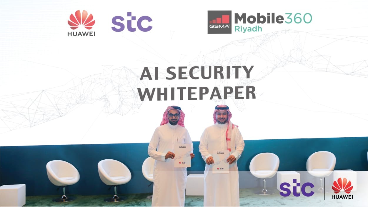 أطلقت شركة الاتصالات السعودية "اس تي سي" وهواوي ورقة بحثية حول أمن الذكاء الاصطناعي لتسليط الضوء على التحديات التي تواجهها المؤسسات لضمان أمن التقنيات الناشئة. وأظهرت الأبحاث بأن سوق الذكاء الاصطناعي ينمو بنسبة 36.1% سنوياً وستصل قيمته إلى 641 مليار دولار بحلول عام 2028. وتم الإعلان عن إطلاق الورقة البحثية في مؤتمر GSMA Mobile 360 في الرياض، الذي شهد حضور صانعي السياسات والهيئات التنظيمية بالإضافة إلى قادة قطاع تقنية المعلومات والاتصالات في المنطقة.