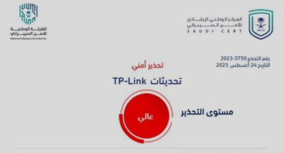 “الأمن السيبراني” يصدر تحذير أمني بشأن تحديثات أمنية على منتجات TP-Link