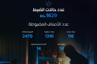 سجلت المنافذ الجمركية البرية والبحرية والجوية 1629 حالة ضبط للممنوعات، وذلك في إطار الجهود المستمرة التي تبذلها هيئة الزكاة والضريبة...