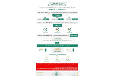 أسفرت الحملات الميدانية المشتركة لمتابعة وضبط مخالفي أنظمة الإقامة والعمل وأمن الحدود، التي تمت في مناطق المملكة كافة، وذلك...