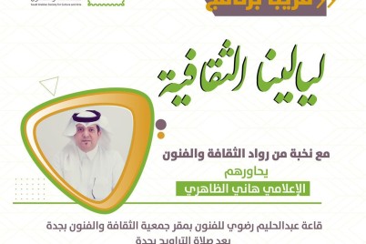 جدة ـ إبراهيم البلوشي ضمن برامجها وفعالياتها الثقافية والفنية، الجمعية العربية السعودية للثقافة والفنون بجدة تطلق برنامج ليالينا الثقافية المتنوع...