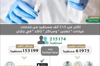 جازان - عفاف مدخل قدّمت عيادات "تطمن" ومراكز "تأكد" في منطقة جازان، خدماتها لـ215174 مستفيدًا منذ بدء العمل فيها...